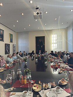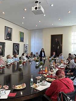 Am Internationalen Tag der älteren Generation am 01.10.2025 lud die Stadt Düsseldorf zu einem Frühstücksempfang in den ältesten Ratssaal des Rathauses ein. Unter den Gästen waren zahlreiche Bewohnerinnen und Bewohner von Pflegeeinrichtungen der AWO. Im Anschluss wurde ein gemeinsamer Spaziergang durch die Altstadt angeboten.