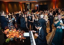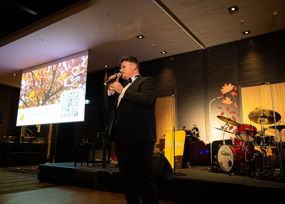 Anschließend führte Andrea Kiewel charmant durch den Abend. Es gab ein köstliches 3-Gänge Menü, bewegende Reden und ein musikalisches Programm mit dem großartigen Tom Gaebel & Band, der alle verzauberte.