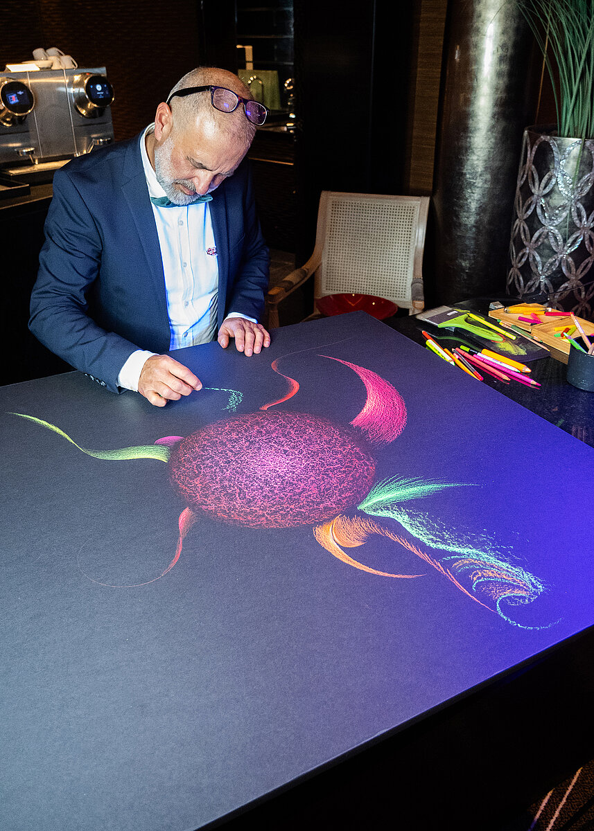 Unter der Schirmherrschaft von Oberbürgermeister Dr. Stephan Keller startete der Abend mit einem festlichen roten Teppich, einem stilvollen Empfang und Musik von Kieron & Friends. Während dessen malte Alfonso Gravina ein farbenprächtiges Bild, welches später versteigert wurde.